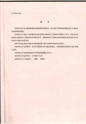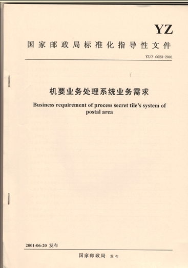 本公司承擔“機要業(yè)務(wù)處理和管理系統(tǒng)”的項目開發(fā),向全國推廣。參加國家技術(shù)監(jiān)督局標準化司組織的編寫國家標準文件專業(yè)培訓(xùn),獲得編制、修訂相關(guān)標準的資格證書。編寫了機要系統(tǒng)的三個國標文件《機要業(yè)務(wù)需求》,《機要系統(tǒng)與信息中心交換數(shù)據(jù)規(guī)范》,《機要系統(tǒng)數(shù)據(jù)庫規(guī)范》。由人民郵電出版社正式出版。